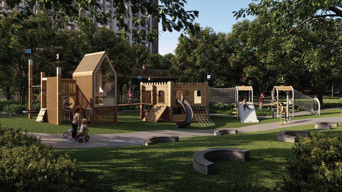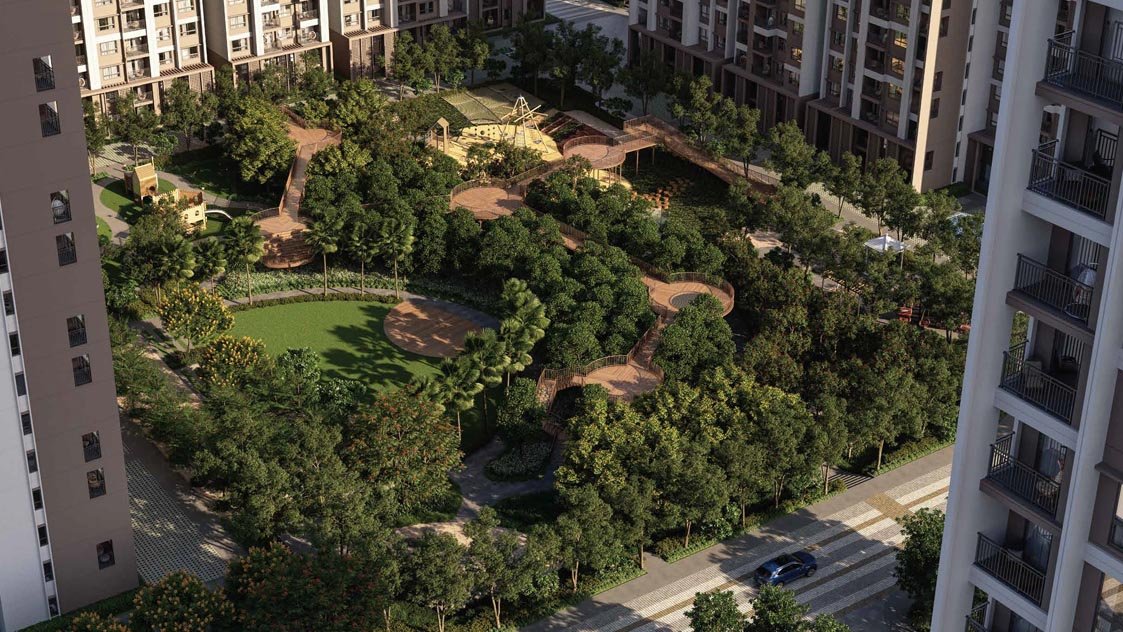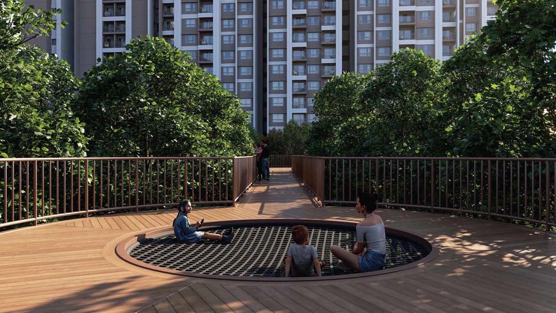 Beyond the core features, the project offers a majestic 60,000 sq. ft. clubhouse alongside a diverse range of more than 60 modern amenities including: ● Mist oasis at roundabout ● Feature pavilion ● Seasonal stream with bubblers for kids ● Yoga area ● Lush planting ● Toddlers’ play area ● Muga court with stepping seating ● Feature waterbody ● Crossover bridge ● Lotus pond ● Hammock garden ● Mini golf ● Vintage garden ● Boxing bay ● Cycle parking zone ● Outdoor gym ● Basket tree ● Butterfly/aroma garden ● Cricket practice net ● Pet park pavilion ● Floor game ● Event lawn ● Deck with stone seats ● Seating niche ● Miniature fort ● Lawn maze ● Skating track ● Pickle ball ● Walking/jogging track ● Bus bay ● Reception & waiting lounge ● Break-out space ● Multi-purpose hall with ● green rooms & pantry ● Creche ● Supermarket ● Heated pool with deck ● Changing room/lockers ● Spa/saloon ● Mini theatre ● Business center ● Outdoor seating ● Library ● Guest rooms – 8 nos. ● Cafeteria ● Reception & waiting lounge ● Coffee bar lounge ● Video/board games room ● Squash court ● Supermarket/convenience store ● Clinic ● Pharmacy ● ATM ● Badminton Court ● Lockers/changing rooms ● with toilets ● Gym ● Yoga/meditation area ● Indoor games room ● Terrace pool with deck ● Changing rooms/lockers ● Infinity swimming pool