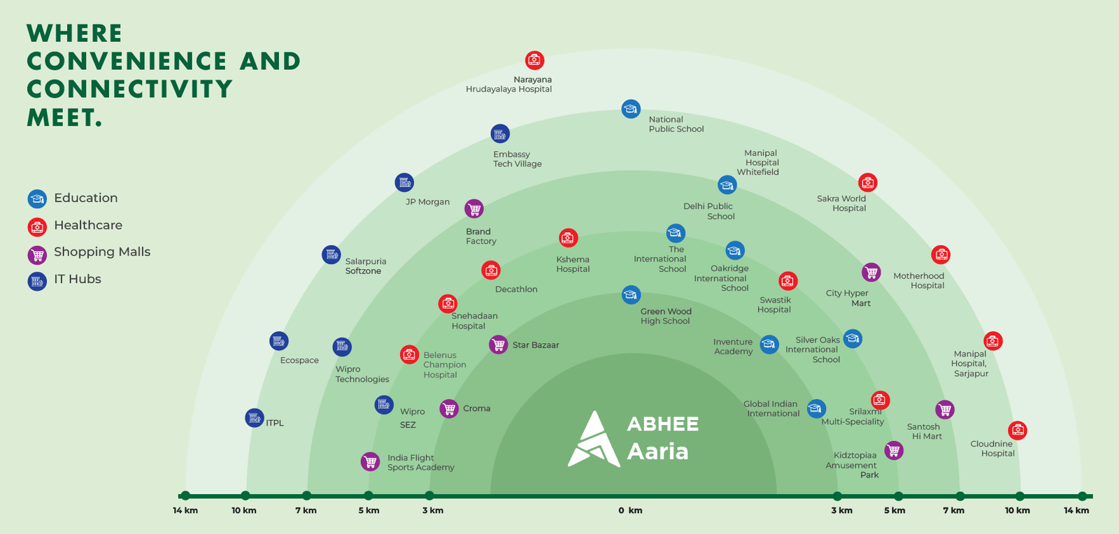 - Whitefield & IT Hub – 10 minutes away